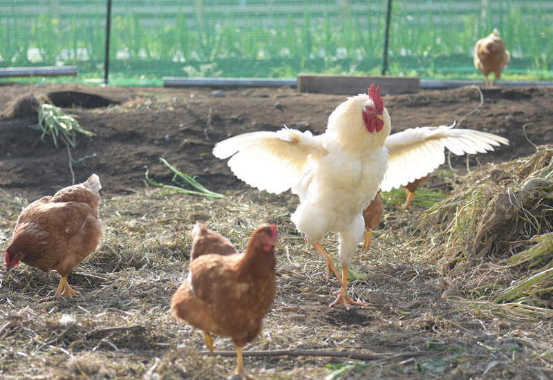 太陽の光と風を浴び、健康的に過ごす鶏は、ストレスが少なく、元気に卵を産んでくれる。